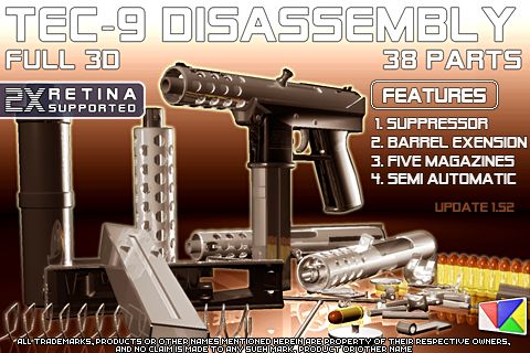 Descriere: Tec-9 Disassembly 3D high quality gun app which allows you to look how it works and disassembly 3D model of Tec-9 Assault Pistol by your own fingers! You have chance to touch with world unique technology of virtual gun disassembling.