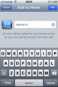Daca ati urmat tot pasii corect atunci dupa ce apasati Add veti avea in SpringBoard o iconita care odata accesata va deschide www.zaone.ro in Safari.