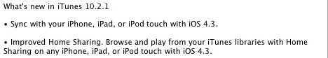 Iata changelog-ul pentru iTunes 10.2.1 :