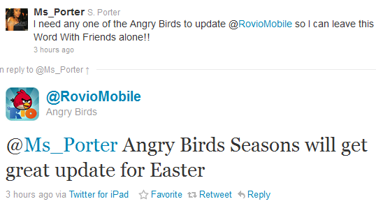 Compania Rovio a anuntat in aceasta seara ca inaintea Pastelui vom avea un update pentru aplicatia Angry Birds Seasons. Rovio pregateste un update foarte important pentru luna aprilie si desigur ca vom avea parte de ceva oua colorate, poate si cateva iepurasi, totul implementat in deja celebrul ecosistem al pasarilor din Angry Birds. Rovio lanseaza astfel de update-uri inaintea sarbatorior importante iar Pastele nu avea sa fie o exceptie deci cu aproximativ o saptamana inaintea Pastelui vom avea in AppStore o noua versiune a jocului Angry Birds.