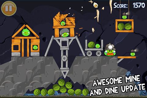 Angry Birds 1.6.0 Mine and Dine a fost lansat aseara in App Store, noua versiune a jocului aducand un capitol nou cu o serie intreaga de nivele a caror actiune se desfasoara in mine intunecate unde porcusorii lucreaza de zor. Cei de la Rovio Aduce un capitol cu 15 nivele complet noi si puteti observa in imaginea de mai sus ce va asteapta de indata ce ajungeti sa deblocati noul capitol al Angry Birds. Din pacate update-ul vine la jocul principal si in afara de locatie nu schimba absolut nimic in ceea ce priveste grafica ori gameplay-ul. Update-ul este gratuit pentru cei care au cumparat jocul.