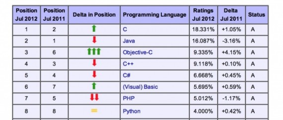 Daca va uitati acolo observati ca Objective-C este mai popular decat C++, dar inca este mult in urma Java sau C, dar cred ca anii urmatori vor reduce diferenta. Popularitatea Objective-C-ului este datorata in totalitate App Store-ului care se dezvolta in mod constant.