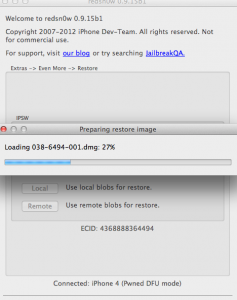 Redsnow has stop working.. – acelasi lucru de 4 ori consecutiv, iar daca incepe procesul de update, primesti eroarea respectiva.