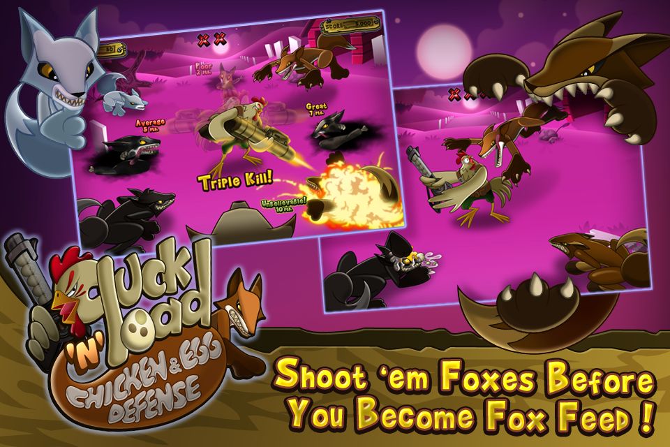 „Cluck ‘n’ Load: Chicken & Egg Defense” is a fast paced tap reaction game where you (Cluck) need to defend the barn and kill the foxes before they eat you along with all the other chickens and eggs…