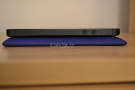 Pentru inceput am fost placut impresionat de design-ul terminalului si de calitatea materialului utilizat pe carcasa, el contrastand foarte placut cu interfata Windows Phone 8-ului instalat de HTC. Materialul are o textura asemanatoare cu cea a catifelei, nu se zgarie aproape deloc, e placut sa-l tii in mana si nu il scapi usor, se murdareste relativ usor, insa pot sa spun ca imi pare rau de decizia celor de la Apple de a nu lansa iDevice-uri cu mai multe culori. Prea putin impresionat am fost pe tot parcursul utilizarii de butonul de blocare al dispozitivului care abia poate fi apasat, dar si de butoanele pentru volum/camera, iar din punctul meu de vedere HTC-ul a facut o greseala alegand sa taie dimensiunea butoanelor pentru a nu le scoate in exteriorul carcasei. Desi Apple a fost criticata pentru ca nu le da posibilitatea utilizatorilor de a schimba bateria terminalelor, HTC-ul face acelasi lucru la acest dispozitiv, insa din fericire din ce in ce mai putine terminale au probleme cu bateria.