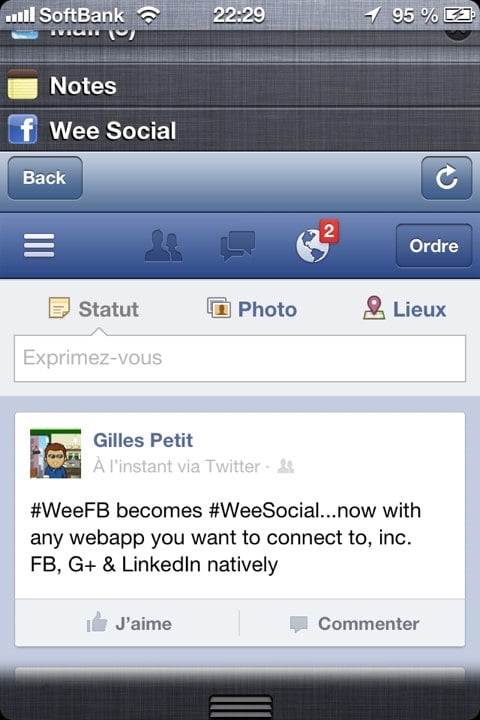 WeeSocial for Notification Center este un tweak lansat in cursul noptii trecute in Cydia, iar prin intermediul sau putem accesa versiunea web a retelelor sociale, si nu numai, direct din Notifications Center. Practic tweak-ul permite utilizatorilor sa acceseze rapid Facebook, Google+ si Linkedin din Notifications Center, insa orice alta pagina web poate fi accesata in acelasi mod, problema este ca din pacate s-ar putea sa nu puteti utiliza oricand tastatura virtuala.
