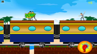 Try to make it as far as possible with out getting hit by glass bottles, dynamite, boxes and other dangers on the train….