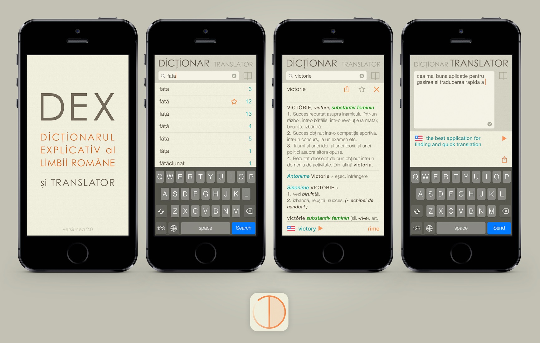 Descriere: Aplicaia „Dicionar i Translator” conine definiiile din proiectul „DEX Online”, cea mai complet i complex baza de date tip dicionar din Romania.
