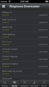 – Browse ringtones by Feature, Most Downloaded, Most Commented, Top Rate, New & Popular or Newest.