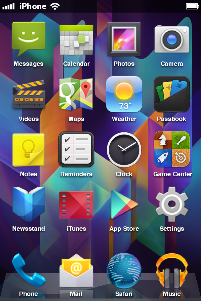 Daca sunteti un fan al UI-ului conceput de catre Google pentru cea mai recenta versiune a Android, dar nu doriti sau nu puteti sa achizitionati un terminal cu acest sistem de operare, atunci poate veti dori o tema pentru iOS 7. Android KitKat Theme a fost lansata in cursul acestei nopti in Cydia, iar cu ajutorul sau puteti schimba intreaga interfata a iOS 7 dupa cum puteti vedea deja in imagninea de mai sus, toate noutatile rezumandu-se la inlocuirea iconitelor aplicatiilor si a wallpaper-ului.