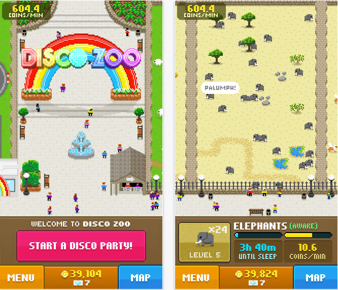 From the creators of Tiny Tower comes Disco Zoo! Tiny Animals. Big Fun. Travel to regions around the world and collect everything from pigs to dinosaurs for your Disco Zoo. Discover hidden animals through casual puzzle play. Manage and expand your zoo to maximize earnings. Throw funky disco parties to get your animals and visitors groovin’!