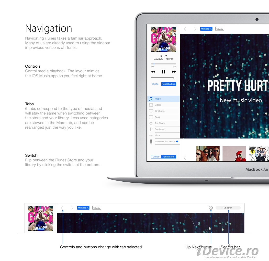 Imprumutand o buna parte dintre ideile utilizate in design-ul iOS 7, dar si a OS X Mavericks, conceptul ne prezinta un update important pentru actuala interfata a aplicatiei iTunes. Daca Apple va alege sau nu sa implementeze oa ctualizare atat de importanta ramane de vazut, insa cu siguranta exista destui utilizatori care asteapta un design complet nou pentru programul celor de la Apple.