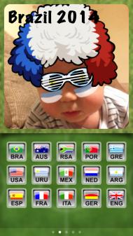 Easily put colorful makeup, flags, wigs, scarfs, glasses and other accessories on your own photos, friend’s photos, and group shots.