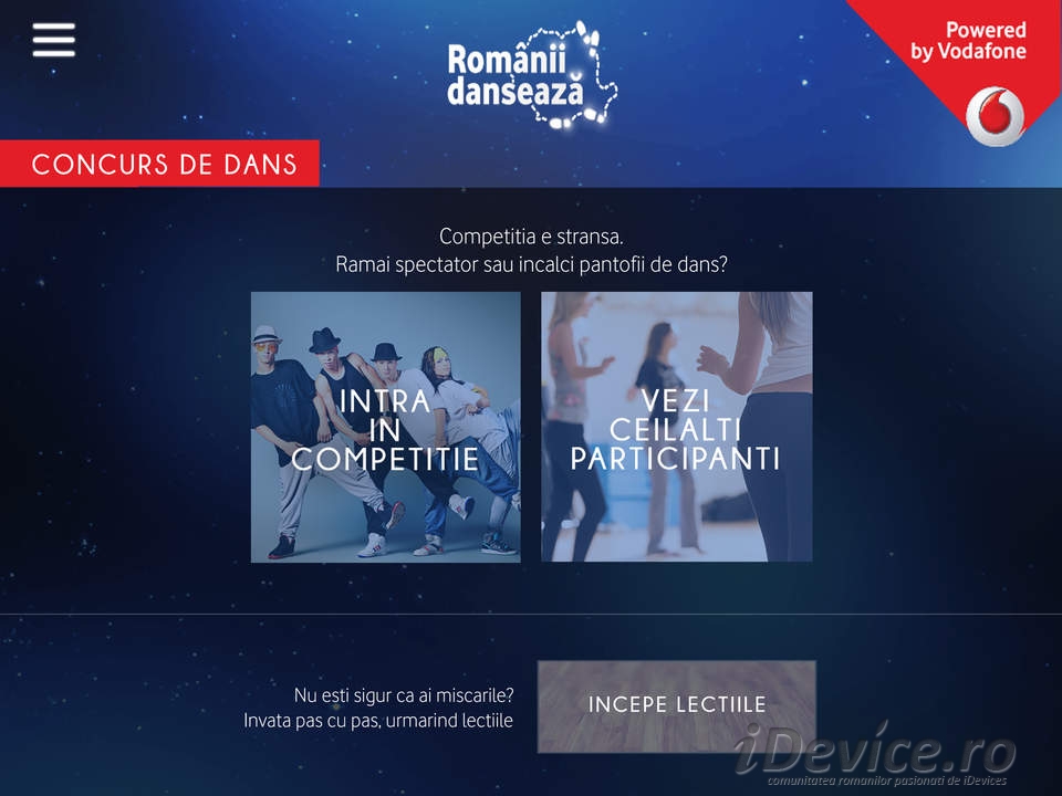 Danseaza Printre Stele este cel mai nou show TV lansat de catre Antena 1 in cursul acestei seri si daca l-ati urmarit, atunci stiti ca el are o aplicatie prin intermedul careia puteti intra in competitie sau puteti lua lectii de danse. Romanii danseaza este aplicatia pentru iPhone si iPad a emisiunii Danseaza Printre Stele, in acest articol puteti vedea cateva imagini cu interfata sa, ea fiind facuta in colaborare cu operatorul de telefonie mobila Vodafone Romania.