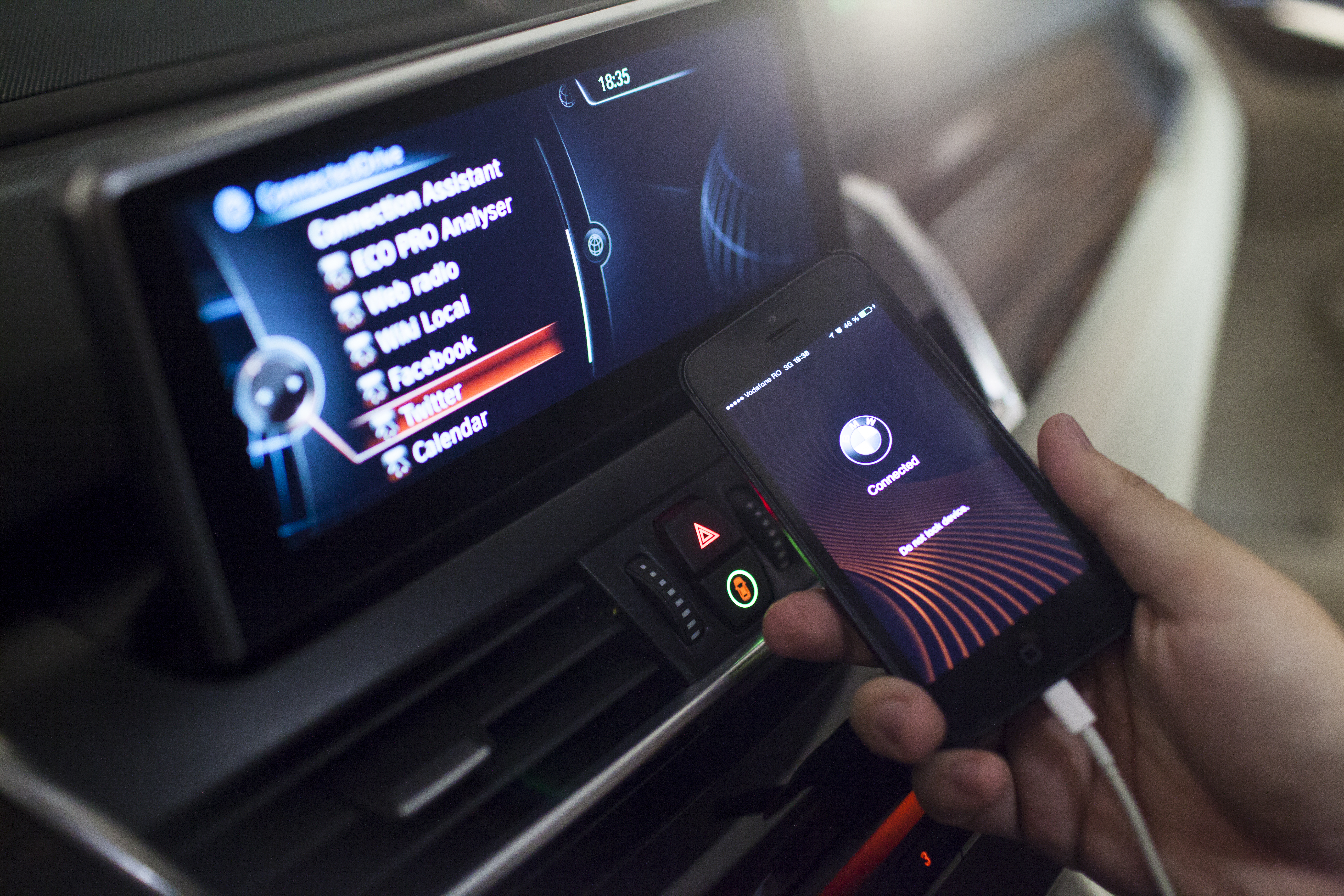 Prin intermediul acestui sistem veti avea posibilitatea de a va conecta iPhone-ul la masina folosind o conexiune USB si veti putea utiliza una dintre aplicatiile disponibile pentru voi pentru a interactiona cu prietenii pe Facebook sau Twitter, pentru a asculta muzica prin Deezer si nu doar atat. Cei de la BMW au conceput o serie de aplicatii potrivite pentru a fi utilizate in masina, una dintre cele mai interesante dintre ele permitandu-va sa inregistrati tururi de pista si sa va comparati timpii de rulaj cu prietenii vostri si multe altele. BMW este primul producator de masini care aduce acest tip de interactiune pentru utilizatori in Romania si folosind sistemele de comenzi vocale, ele va scutesc de coborarea privirii de la drum pentru a afla ce au mai publicat prietenii vostri pe Facebook.
