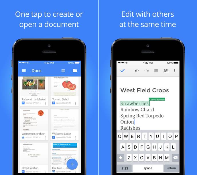 Google Docs, este disponibila pentru descărcare gratuita prin App Store.