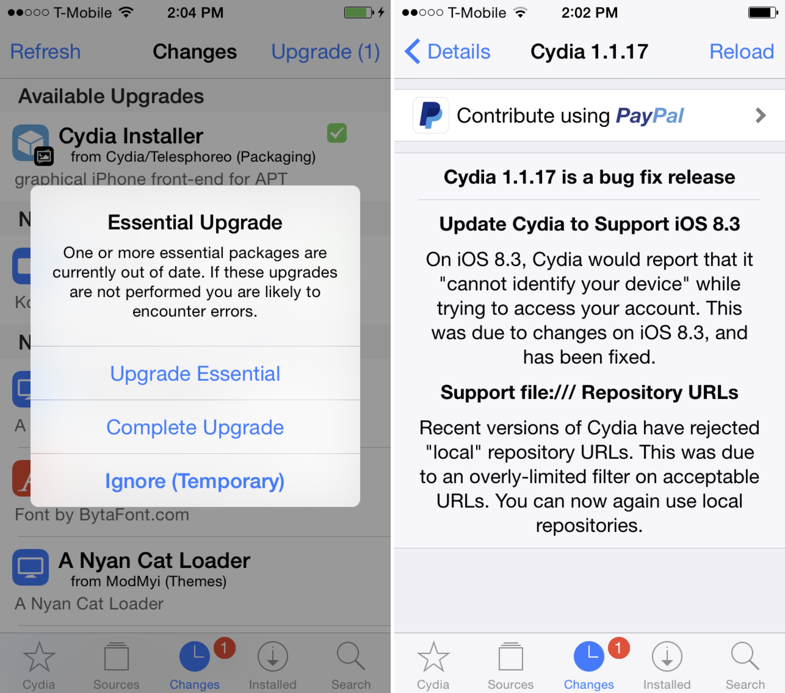 Cydia 1.1.17 update a fost lansat cu doar cateva minute in urma pentru a aduce compatibilitate cu iOS 8.3 si a rezolva problema cannot identify your device care a fost intalnita de o multitudine de utilizatori pana acum.