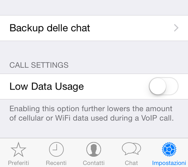 - Reducerea traficului de internet pentru apeluri VoIP : WhatsApp Messenger iOS 9 are disponibila o noua optiune care ne permite sa reducem substantial traficul de date consumat de catre apelurile VoIP efectuate prin retelele celulare de date.