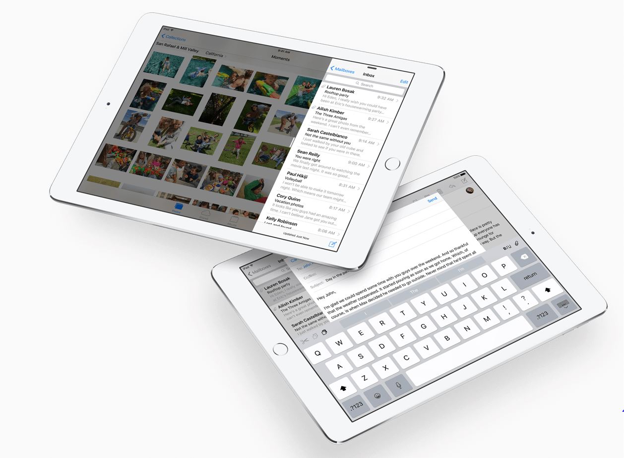 iOS 9 ofera o experienta complet noua de a folosi tabletele iPad, compania Apple implementand in sfarsit un sistem care ne permite sa vizualizam cate doua aplicatii in acelasi ecran si sa le folosim simultan, insa mai mult decat atat, putem sa vizualizam si ferestre ale altor aplicatii peste cele utilizate.