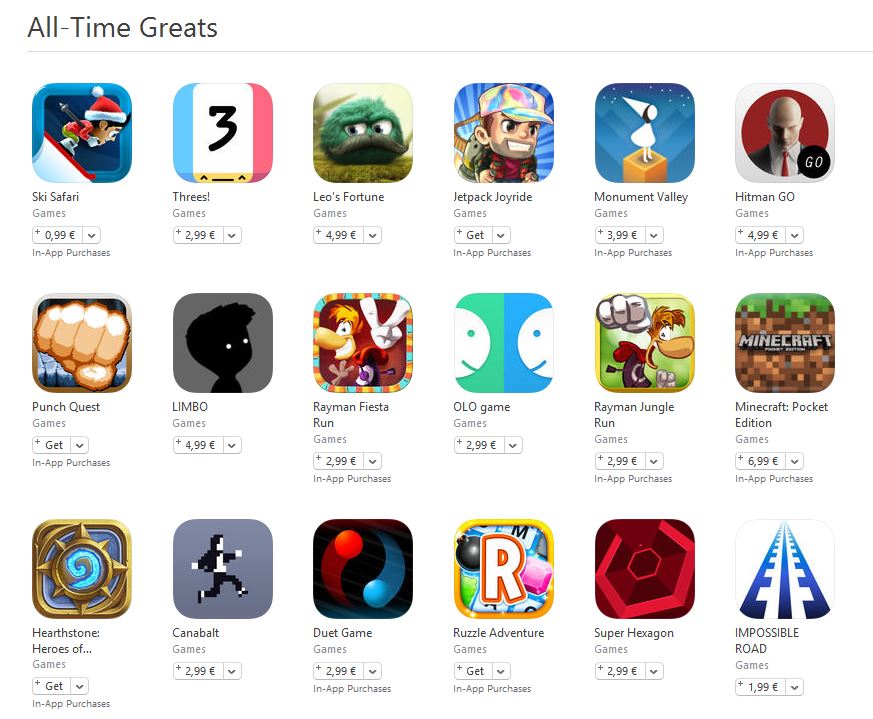 Accesand sectiunea All-Time Greats veti descoperi cateva zeci de jocuri alese “pe spranceana” de catre inginerii companiei Apple, iar despre multe dintre ele am vorbit chiar si aici in diverse randuri.