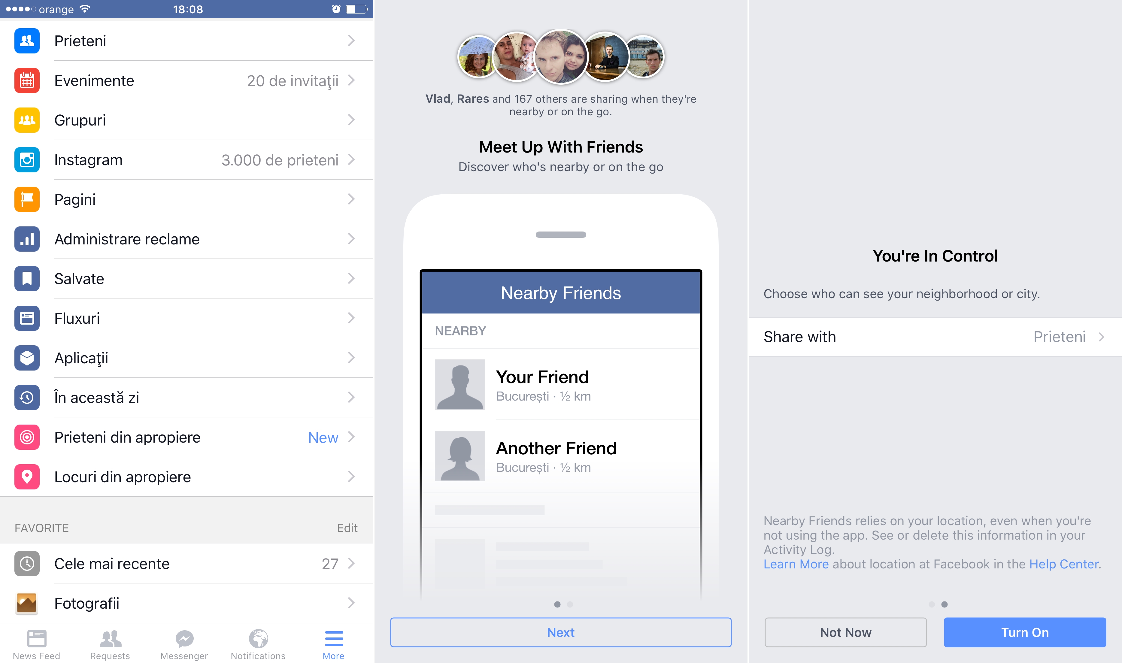 Facebook a lansat in Romania functia Prieteni din apropiere