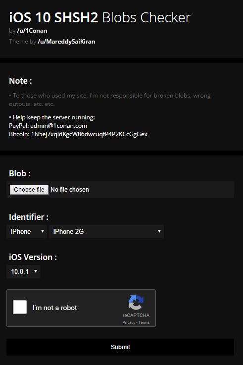 Pentru a va folosi de intregul sistem va trebui sa accesati acest website, sa incarcati fisierul SHSH2, introduceti acolo toate datele cerute si apasati butonul de verificare al fisierului SHSH2 pe care-l aveti. Website-ul va va spune daca fisierele sunt bune si in acest caz le veti putea folosi cu Prometheus pentru restore la versiunea de iOS pentru care le aveti salvate.