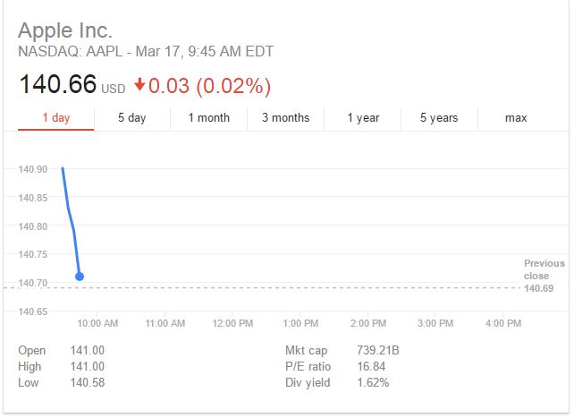 Valoarea pe care o vedeti in imagine este totusi ma imica decat cea de 141 dolari atinsa in cursul acestei zile, precedentul record fiind de 139 de dolari per actiuni. Aceasta crestere vine pe fondul zvonurilor privind iPhone 8 si a increderii analistilor in faptul ca acest smartphone urmeaza sa genereze o crestere substantiala a vanzarilor companiei.