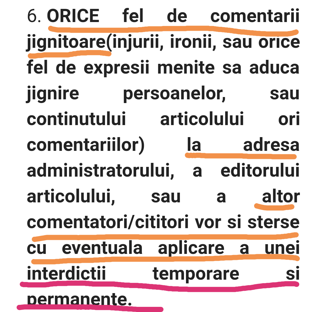 Violezi articolul 6 din regulamentul de comentarii pe idevice.