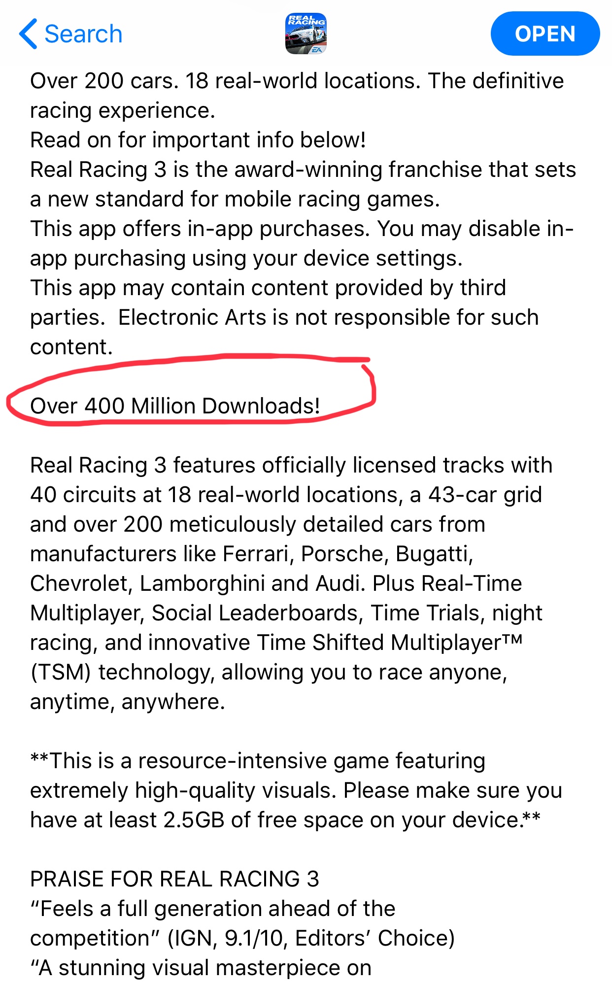 Și Real Racing 3 cu peste 400 milioane de download-uri ce este atunci? https://uploads.disquscdn.com/images/f94bcdbbaf54d55cb0f223a6c45403279916f0f2bda6bc538cf41e863c9b384d.jpg