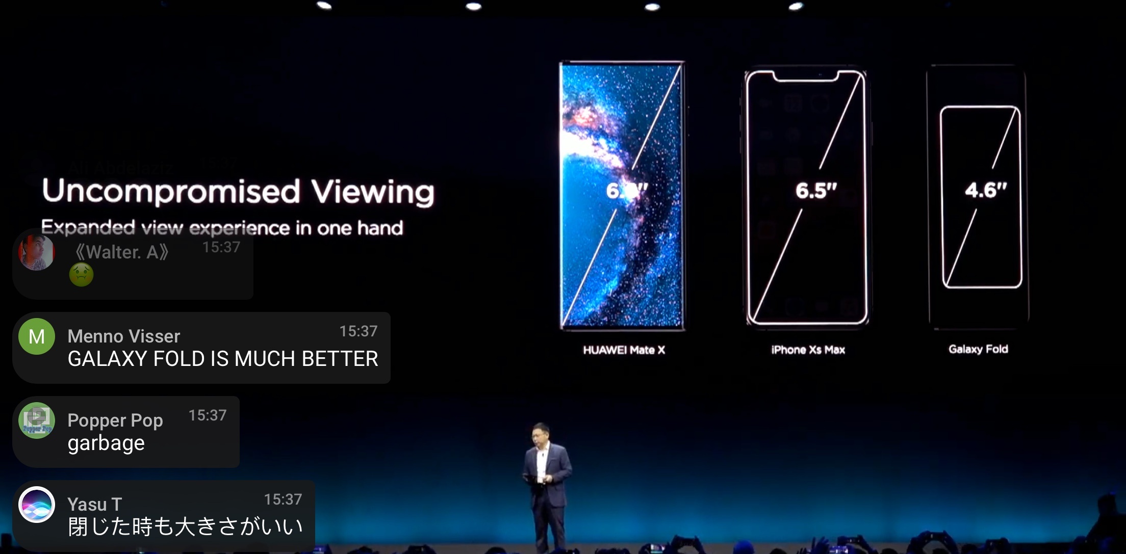 Samsung GALAXY FOLD, nu are prezentat doar design-ul de catre coreeni, ci si felul in care poate fi folosit de catre utilizatori, fie atunci cand este pliat, fie atunci cand este deschis, experientain sine fiind inferioara celei oferita de Huawei MATE X. Per total, mi se pare ca Samsung GALAXY FOLD nu este un produs care trebuia lansat pentru clienti in versiunea in care a fost prezentat de catre cei de la Samsung, si trebuia asteptat inca cel putin un an pentru el.