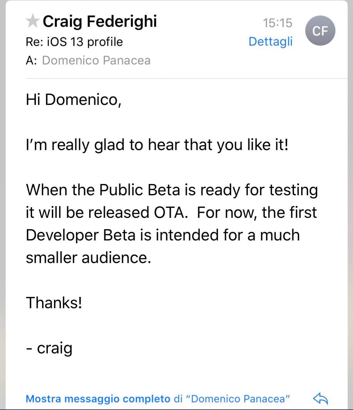iOS 13 nu va fi disponibil pentru instalare prin profil beta in prima versiune oferita de catre compania Apple, din motive inca necunoscute, dar e posibil ca una ulterioara sa fie oferita si in acest mod pentru noi. Craig Federighi, vicepresedintele care a prezentat functiile noi din iOS 13, a afirmat ca in momentul in care sistemul de operare va fi testat in versiune beta publica, vor fi disponibile si profile beta pentru instalare in iPhone.