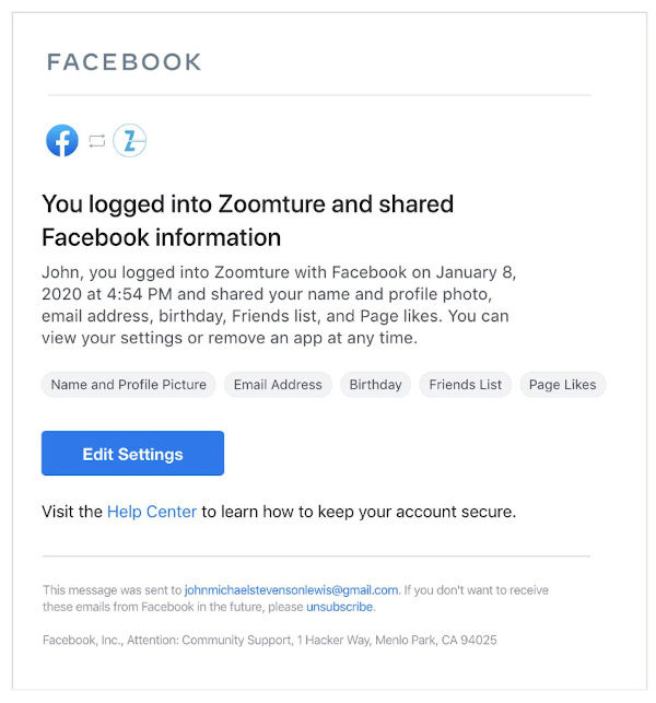 Facebook va include in email-urile de notificare inclusiv un link spre meniul prin care putem controla aplicatiile care au acces la datele noastre, astfel incat accesul poate fi blocat imediat de catre noi. Daca un cont este compromis de catre vreun hacker, putem sa blocam imediat accesul acestuia la datele noastre inainte de a schimba parola, iar asa ne asiguram ca nu foarte multe informatii sunt efectiv furate de catre infractori.