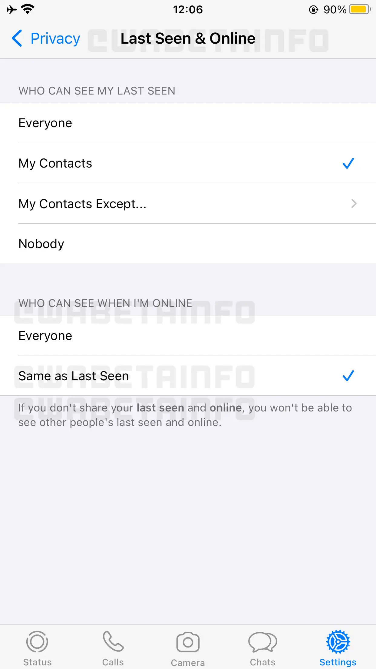 WhatsApp Messenger testeaza aceasta implementare in momentul de fata pentru ca ea sa fie oferita la un moment dat pentru iPhone si Android, dar nu e exclus ca ea sa fie modificata cu posibilitatea de a adauga mai multe optiuni de filtrare a persoanelor care pot, sau nu, sa vada daca suntem online, sau nu.