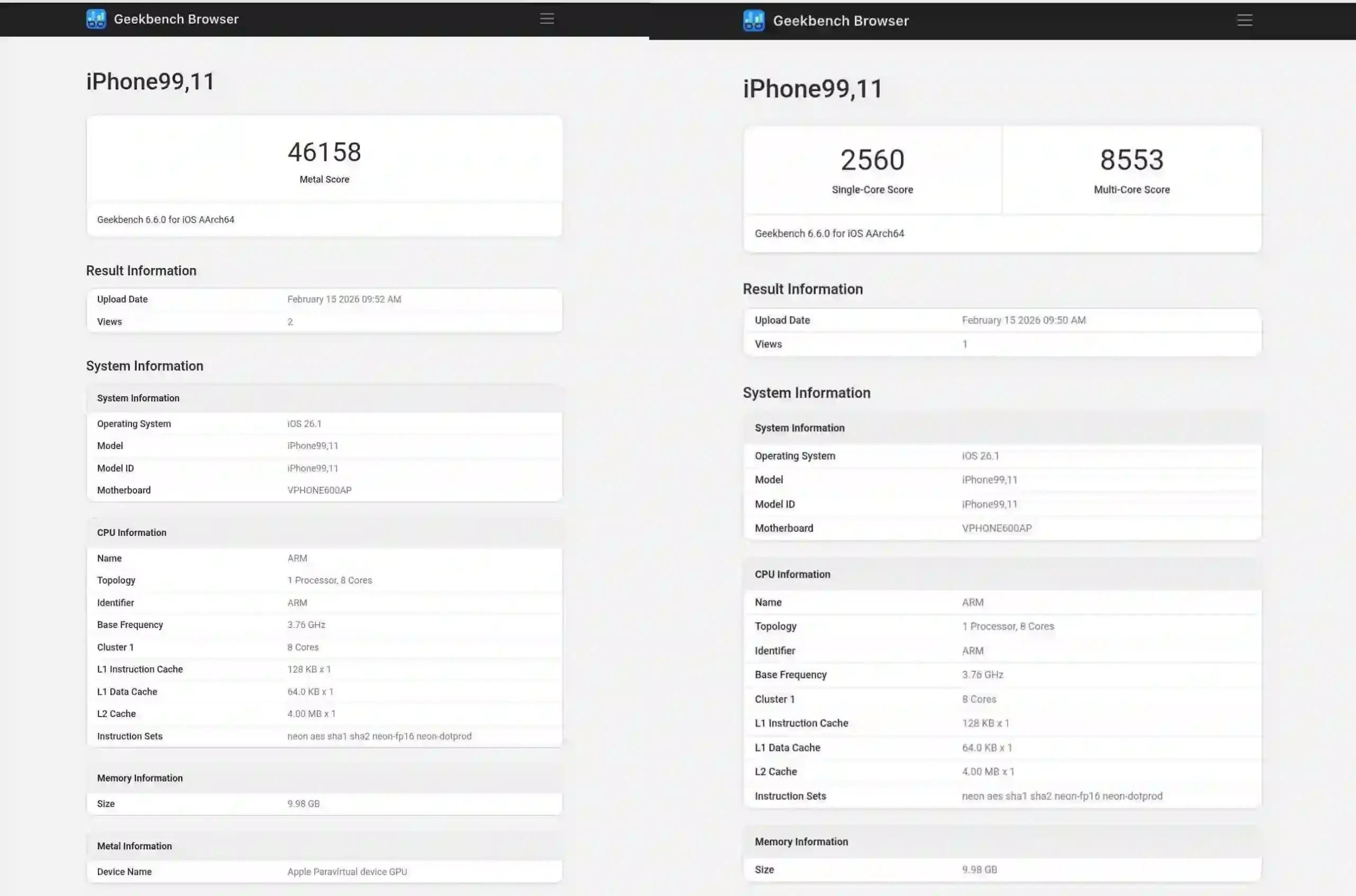 Iphone 17e Listat Pe Geekbench Cu 10 Gb Ram. Foto: X/yabhishekhd.