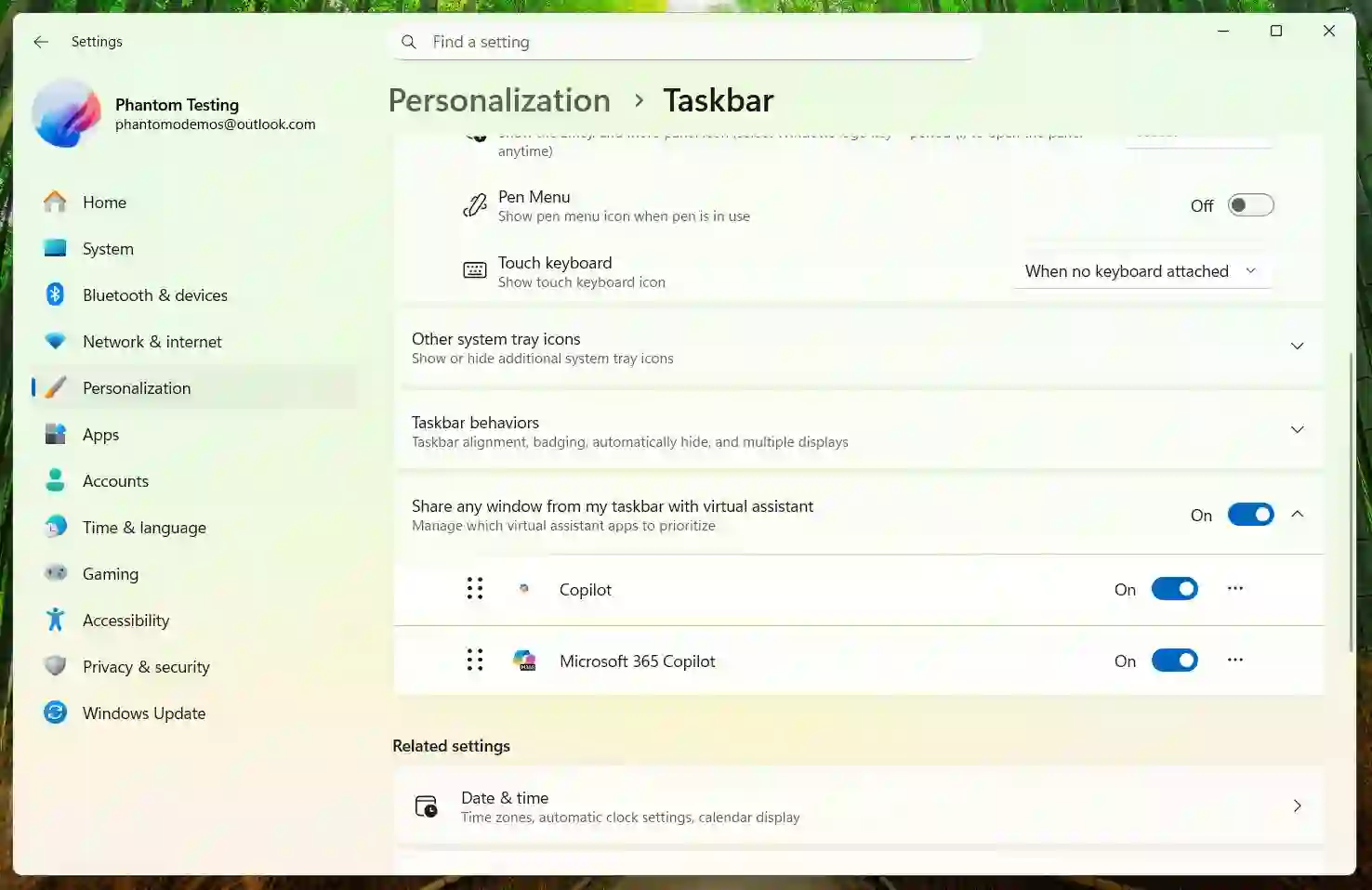 Windows 11 primește o setare nouă numită Partajați orice fereastră din bara de activități cu asistentul virtual, gândită să permită aplicațiilor compatibile, precum Copilot și Microsoft 365 Copilot, să primească acces la o fereastră aleasă direct din interfața barei de activități. Ideea este să elimine partajarea manuală a ecranului și să lase sistemul să predea o fereastră live către un asistent AI, dar numai cu permisiunea utilizatorului.