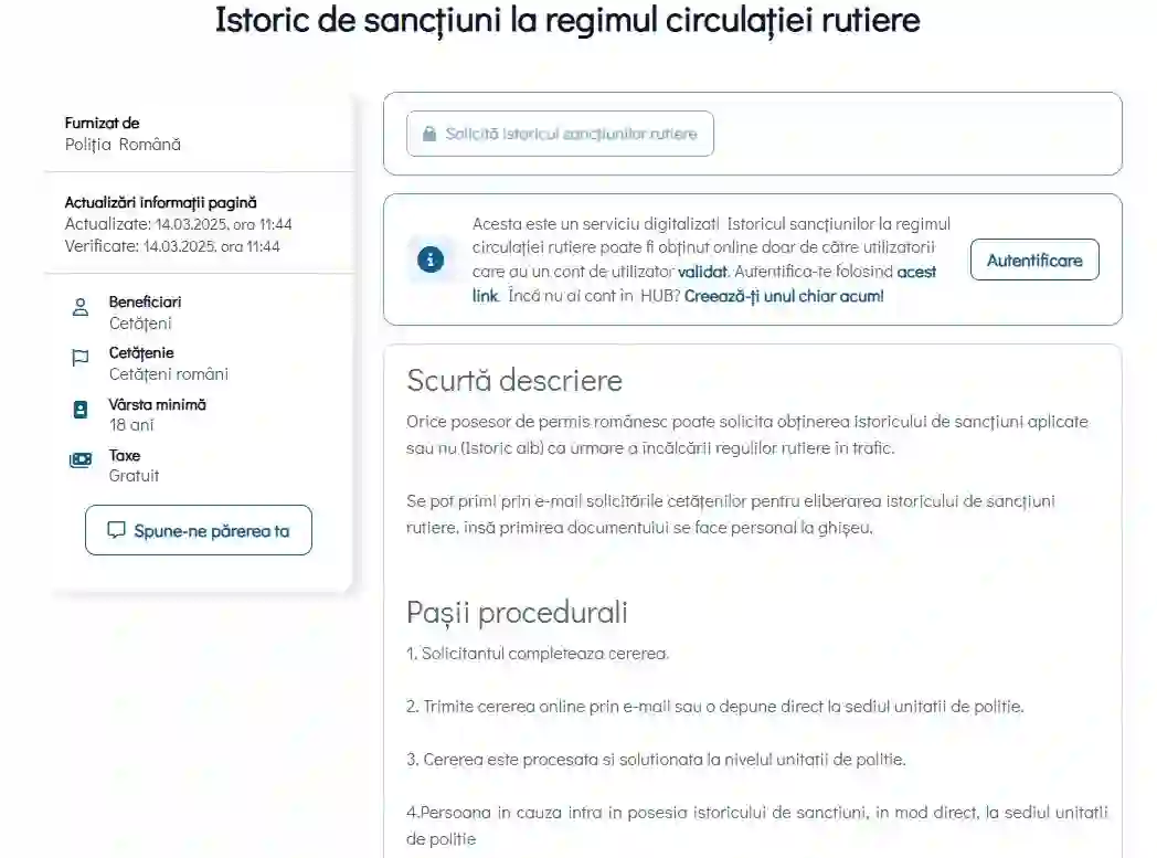 Începând cu data de 6 martie 2026, în cadrul secțiunii „Istoric de sancțiuni la regimul circulației”, au fost implementate funcționalități suplimentare care permit vizualizarea stării dreptului de a conduce și a situației punctelor de penalizare aferente titularilor de permise de conducere.