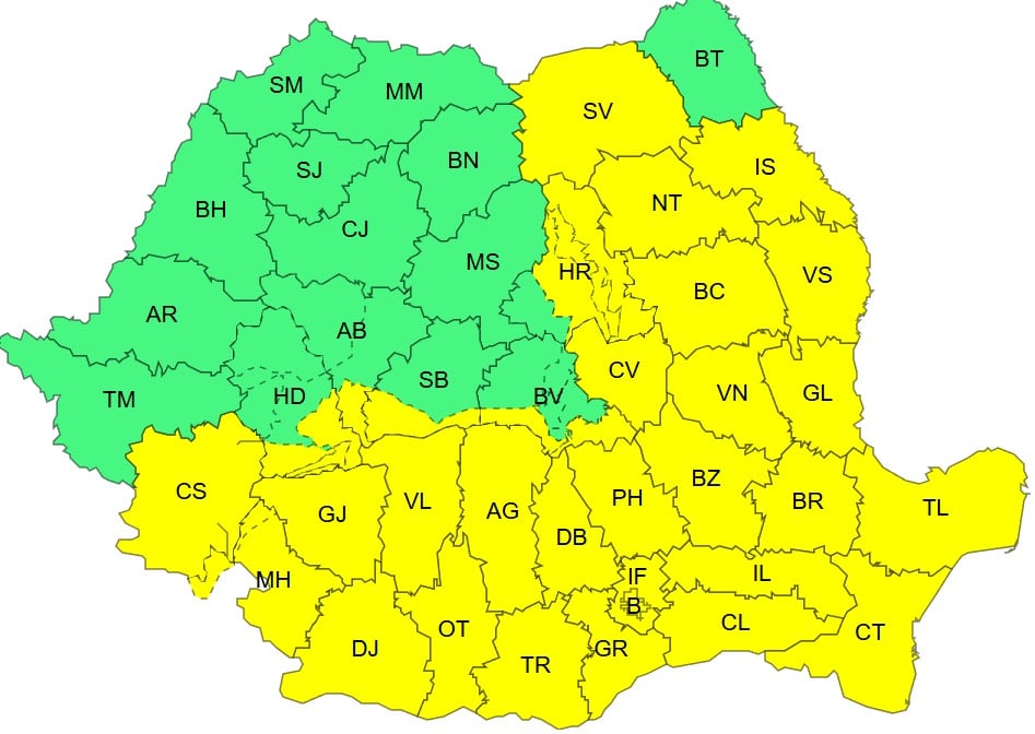 Codul galben vizeaza sudul Banatului, Oltenia, Muntenia, Dobrogea si cea mai mare parte a Moldovei. In aceste regiuni, ploile vor fi insemnate cantitativ si vor avea mai ales caracter de aversa, iar pe arii restranse, in dupa-amiaza si seara zilei de vineri si pe parcursul zilei de sambata, pot aparea descarcari electrice. Tocmai aceasta combinatie face avertizarea importanta: ploaie multa, perioade de intensificare brusca si o persistenta care poate afecta serios conditiile din teren.