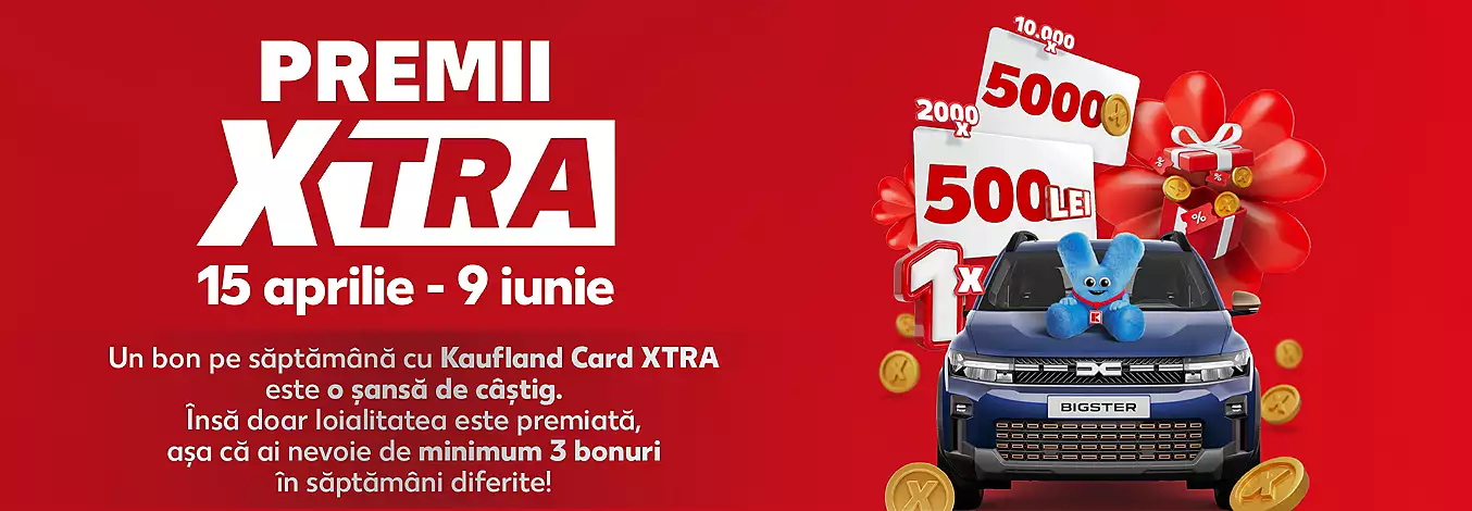 Kaufland adaugă și componenta de tombolă, care poate atrage imediat interesul clienților. În perioada 15 aprilie – 9 iunie, fiecare bon săptămânal realizat cu Kaufland Card XTRA devine o șansă de câștig. Totuși, programul Kaufland pune accent clar pe loialitate, pentru că este nevoie de minimum trei bonuri în săptămâni diferite pentru a intra cu adevărat în joc.