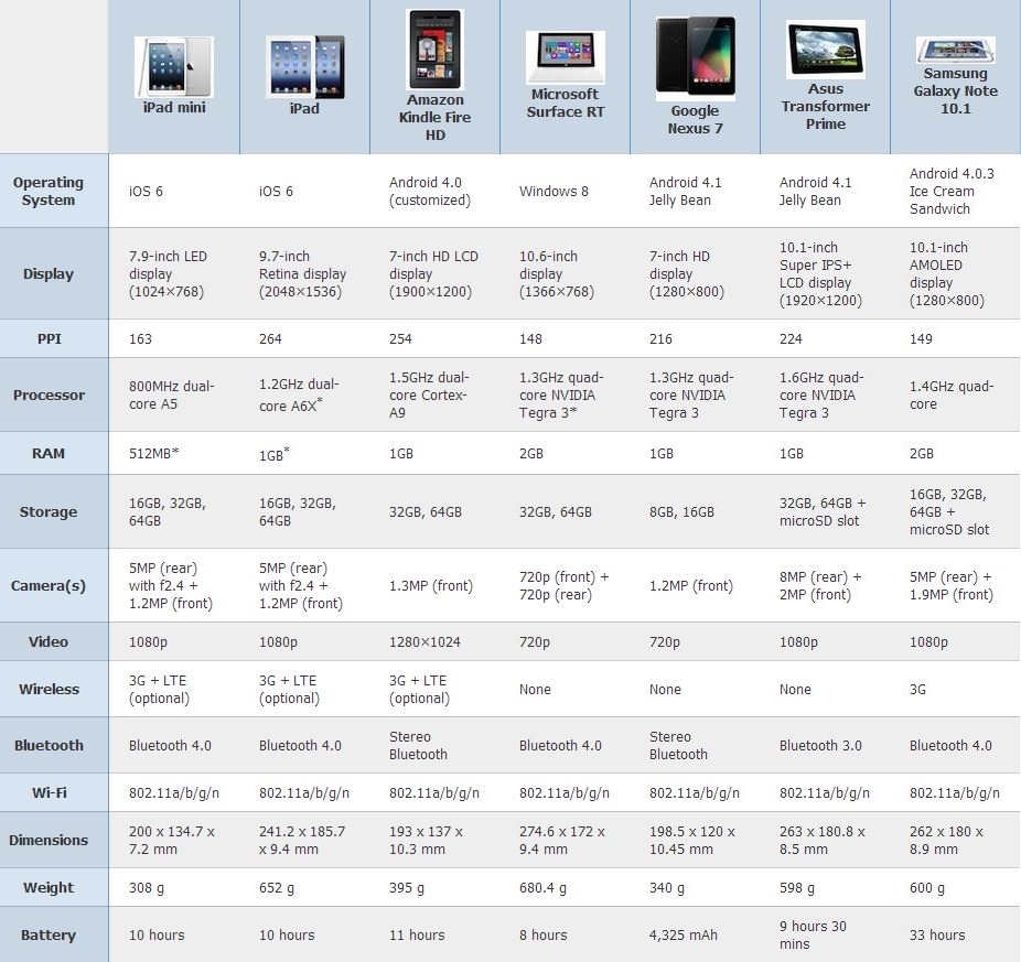 iPad Mini si iPad 4 sunt comparate cu tabletele importante de...